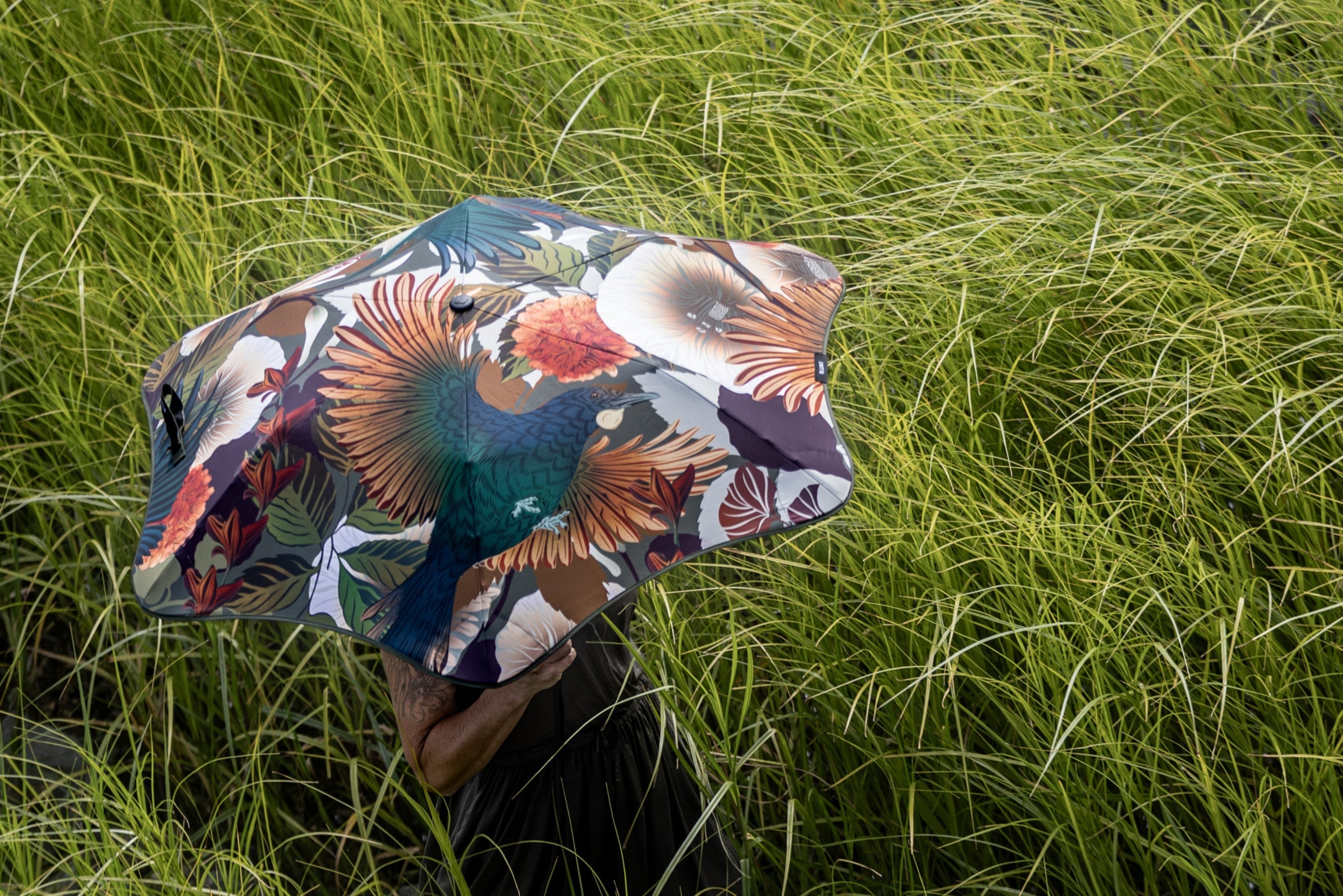 One of the distinguishing features of Flox's artwork is her use of vibrant and confident colours combined with delicate details. Her trademark native birds, ferns, and flowers serve as a celebration of Aotearoa's environmental taonga, capturing the essence of its rich biodiversity. With a magical touch, Flox has the ability to transform grey walls or in this case an umbrella canopy, into vibrant depictions of the natural world, breathing life and energy into every artwork she creates.