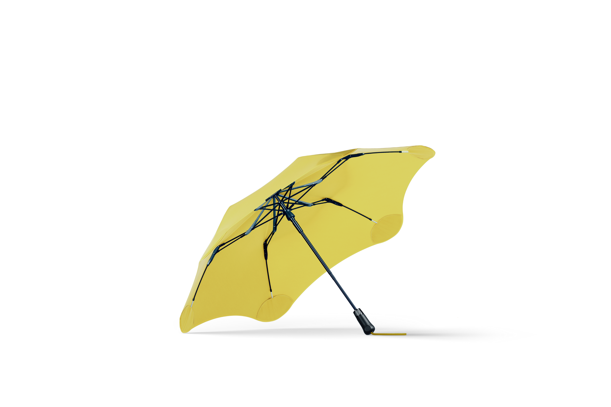 The BLUNT Umbrella frame features a unique strut mechanism that stresses the ribs, creating an effortless outward tension in the canopy as the umbrella is opened.
